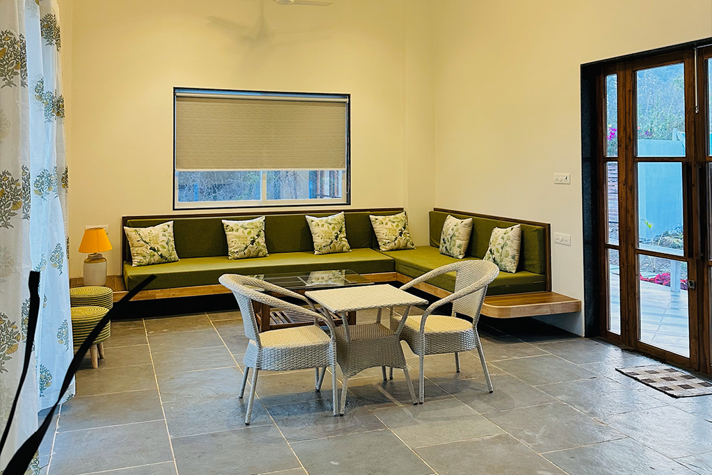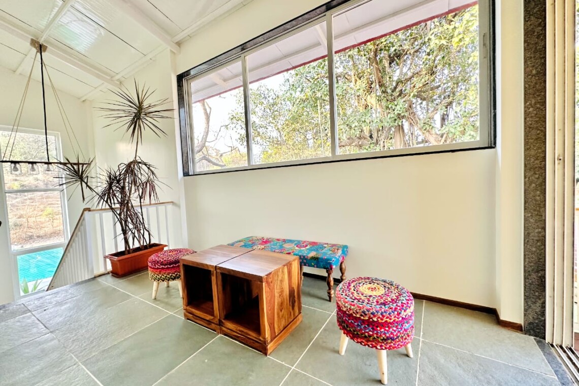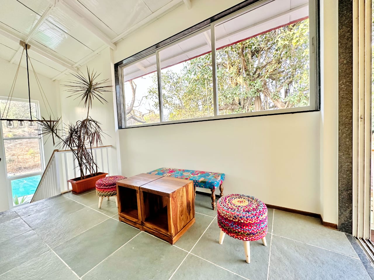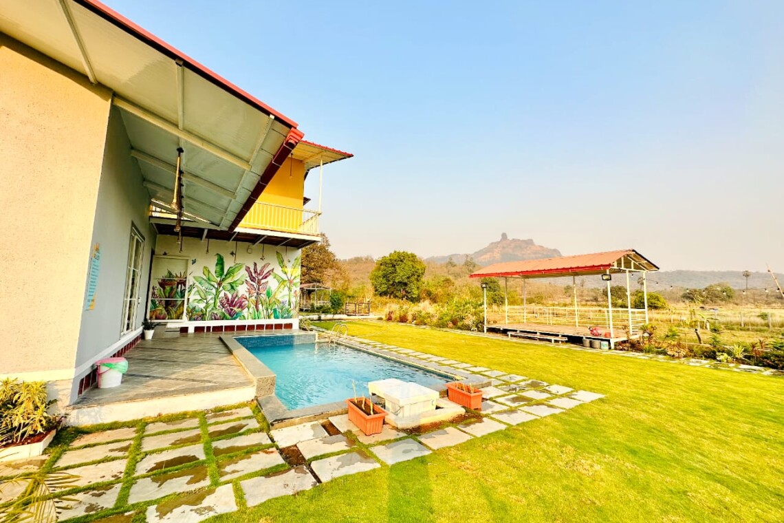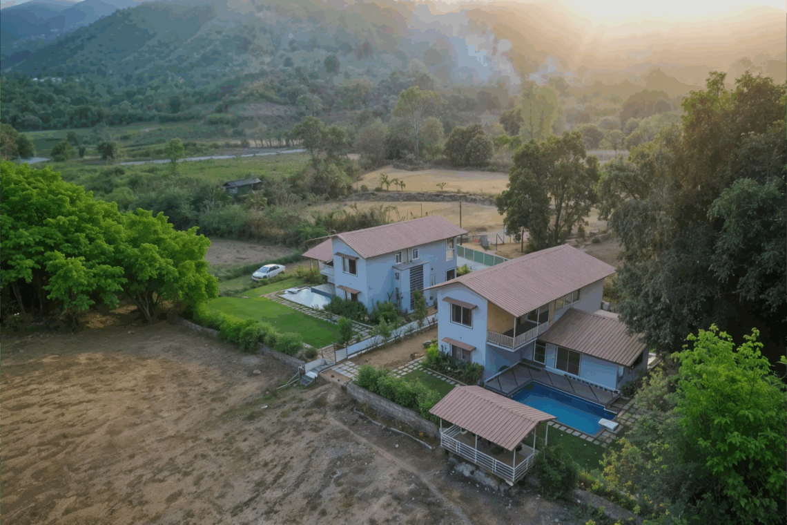 Aesthetic retreat in Karnala with six bedrooms, two private pools, and charming aesthetics, it’s perfect for families and large groups. An exquisite retreat nestled amidst the breathtaking landscapes of Karnala. You’ll be greeted by spacious interiors designed to provide the utmost comfort and relaxation.
